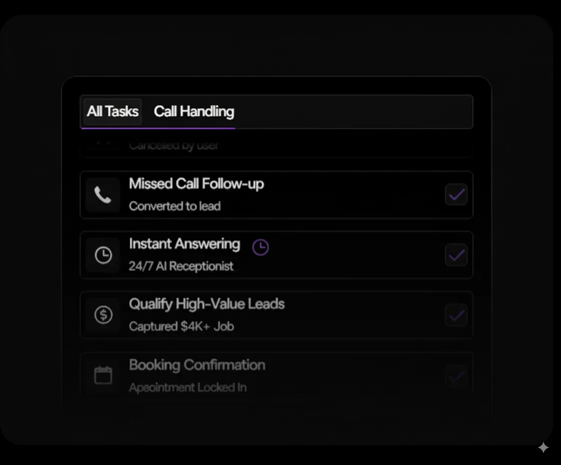 Focus on installs while your AI receptionist handles calls, bookings, and follow-ups — keeping your schedule full without extra admin work.