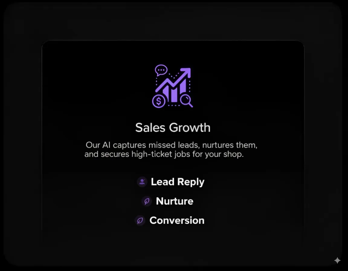 AI-driven outreach captures missed leads, nurtures them with personalized messages, and secures high-ticket jobs for your shop.