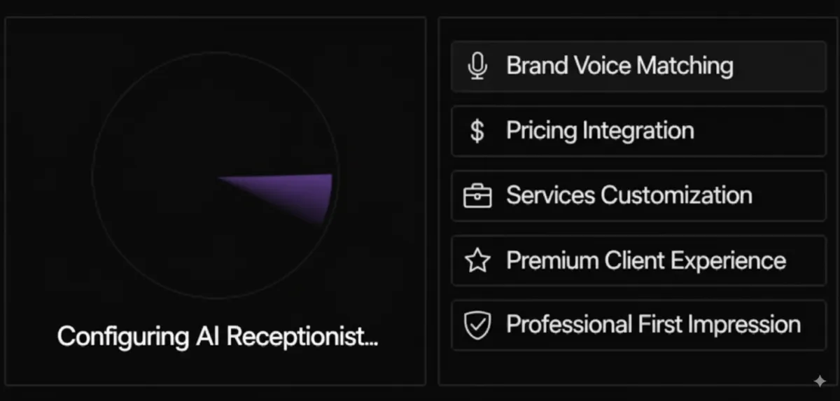 Our team configures your AI receptionist to match your brand voice, pricing, and services — ensuring every client gets a premium, professional first impression.