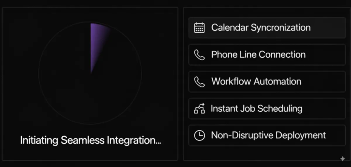 Setup is quick and painless. Typically, installation and onboarding take 7–14 days, depending on complexity. We integrate with your existing calendar (Google, Outlook, etc.) and can work with most phone systems or VOIP providers. If you have special software, we’ll work to connect or route calls appropriately. You don’t need to change everything to get started.