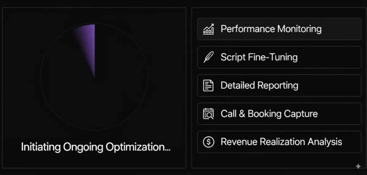 We monitor performance, fine-tune scripts, and provide detailed reporting — so you see exactly how many calls, bookings, and dollars the system captures.